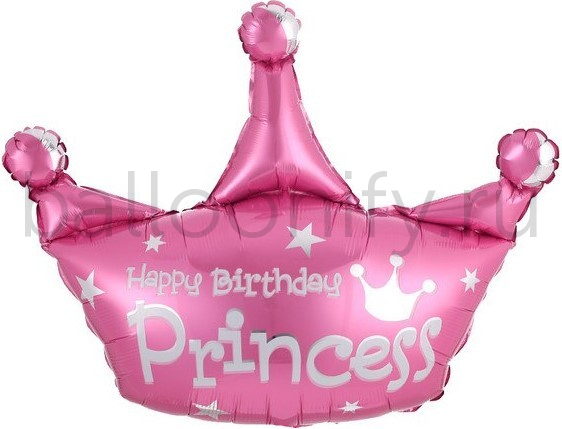 Шар (37''/94 см) Фигура, Корона, С Днем Рождения, Принцесса, Розовый, 1 шт.