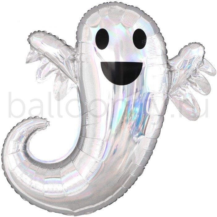Шар (37''/94 см) Фигура, Привидение, Серебро, Голография, 1 шт.
