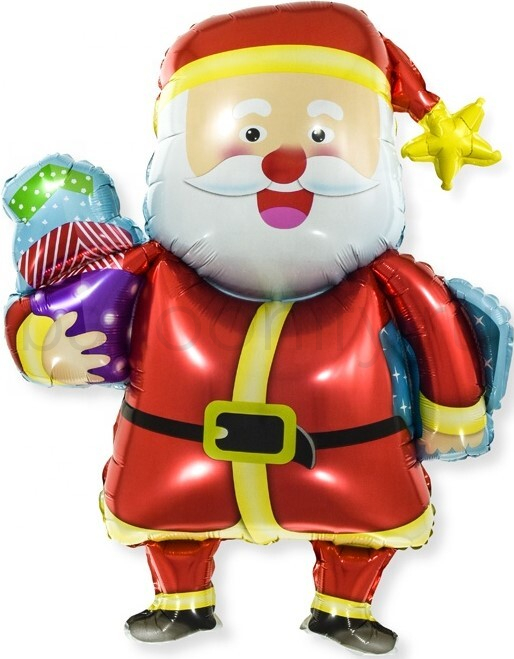 Шар (37''/94 см) Фигура, Веселый Дед Мороз с подарками, 1 шт.