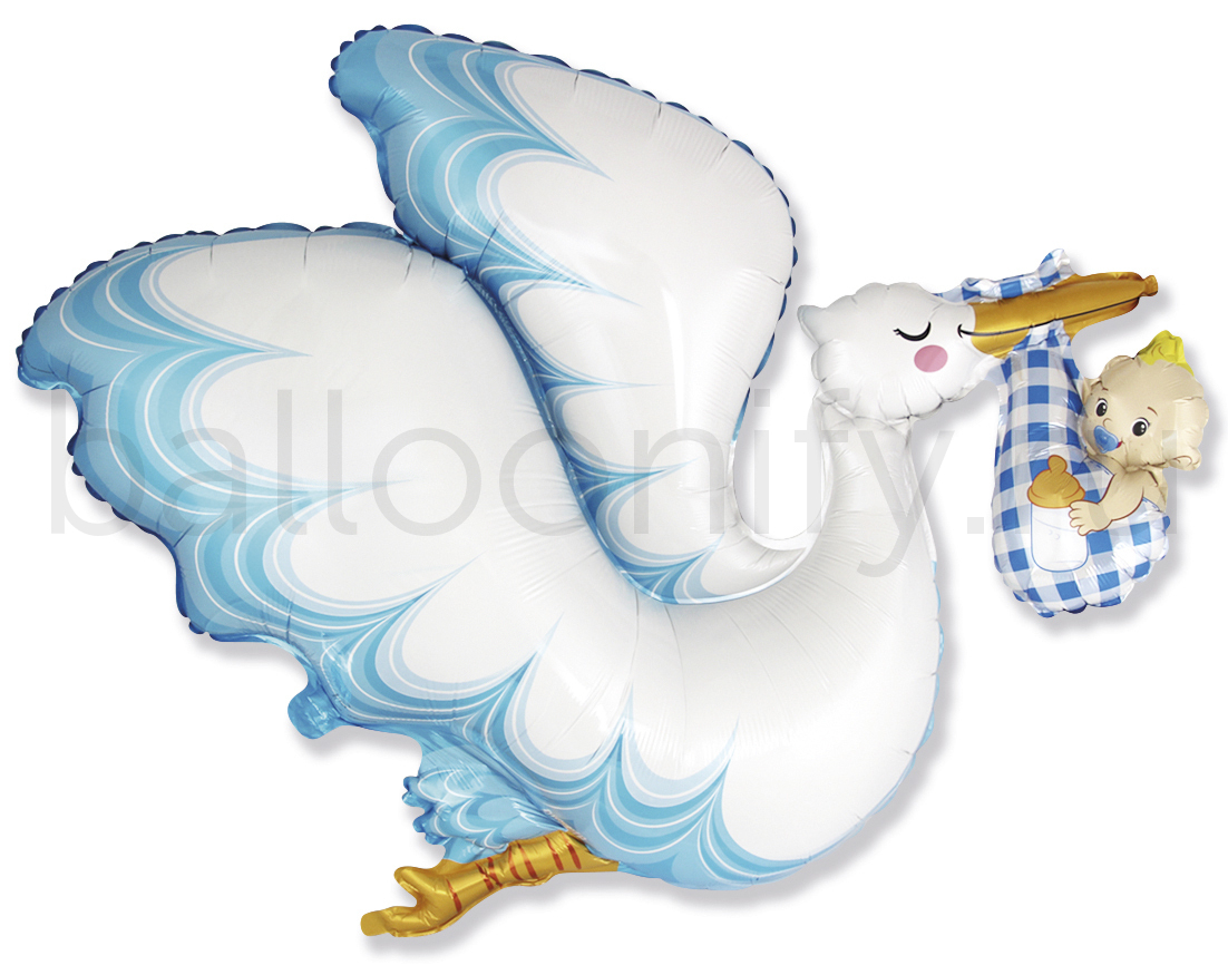 Шар (38''/97 см) Фигура, Аист принес мальчика, Голубой, 1 шт.