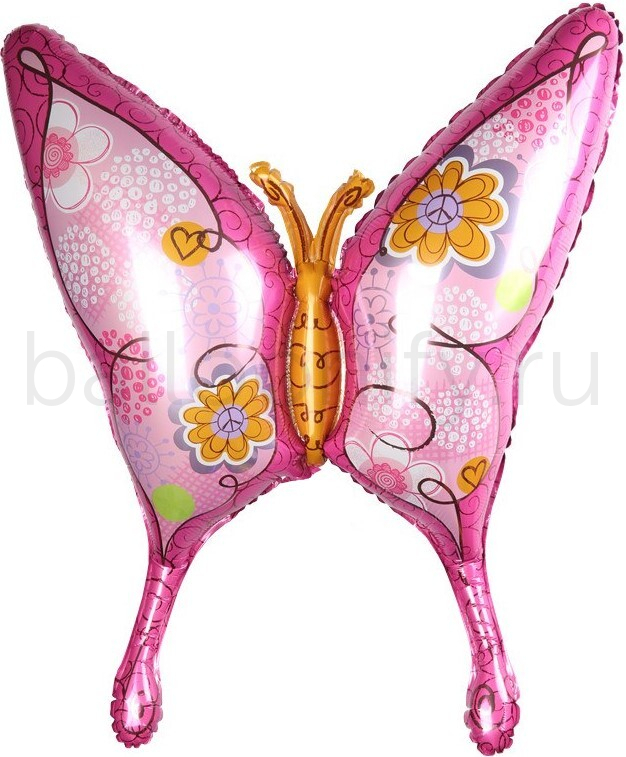 Шар (38''/97 см) Фигура, Тропическая бабочка, Розовый, 1 шт.