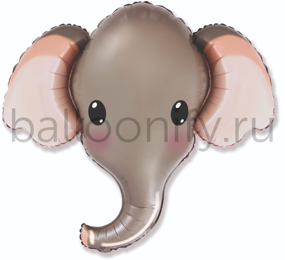 Шар (39''/99 см) Фигура, Голова, Милый Слоник, Серый, 1 шт.