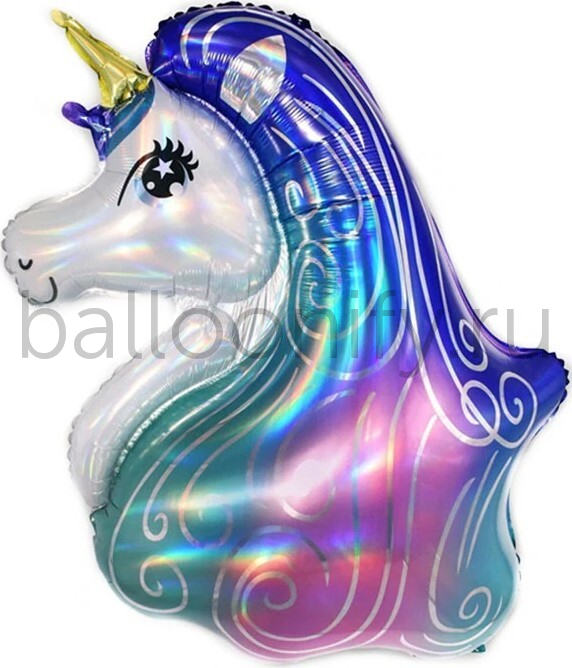 Шар (39''/99 см) Фигура, Голова, Небесный Единорог, Голография, 1 шт.
