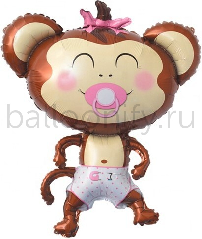 Шар (39''/99 см) Фигура, Обезьянка с соской (девочка), 1 шт.