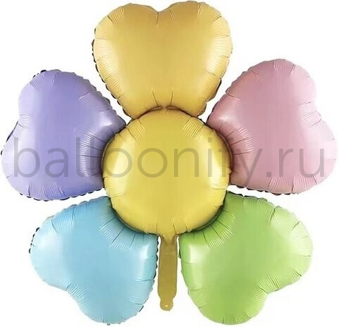 Шар (39''/99 см) Цветок, Лепестки Сердечки, Разноцветный, 1 шт.