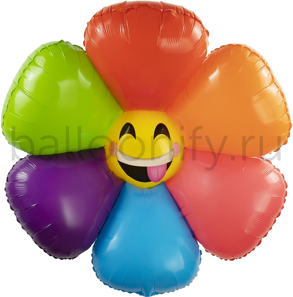 Шар (39''/99 см) Цветок, Ромашка Смайл, Радужный, 1 шт.