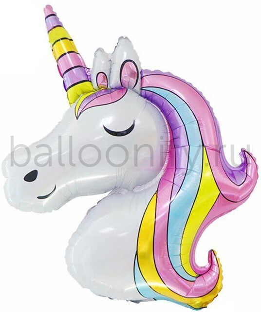 Шар (44''/112 см) Фигура, Голова, Радужный Единорог, 1 шт.