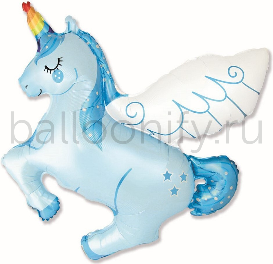 Шар (44''/112 см) Фигура, Волшебный единорог, Голубой, 1 шт.