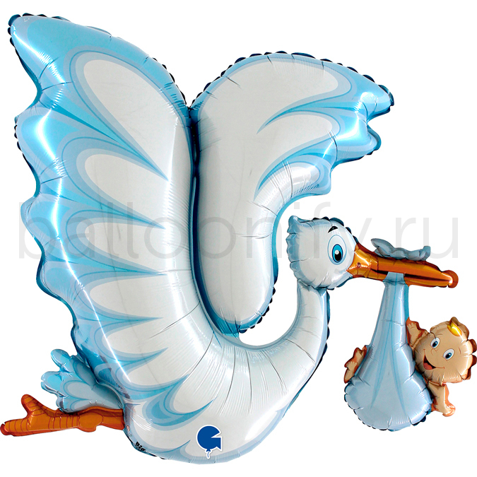 Шар (45''/114 см) Фигура, Аист для мальчика, 1 шт. в уп.