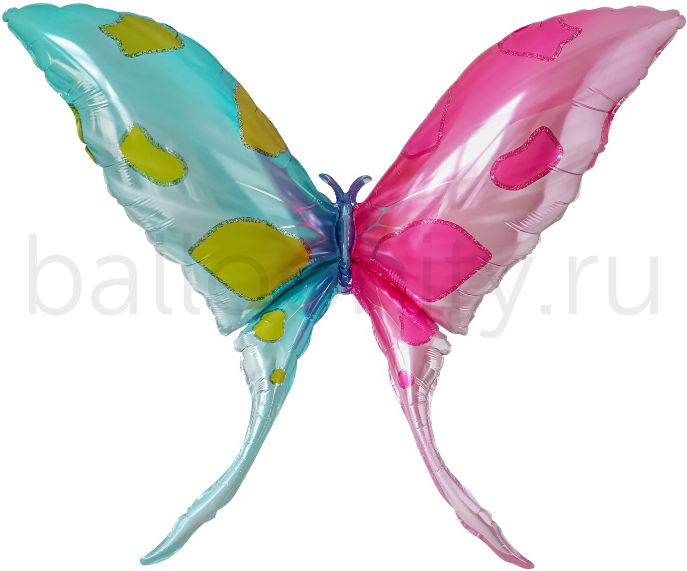 Шар (45''/114 см) Фигура, Бабочка, Голубой/Розовый, 1 шт.