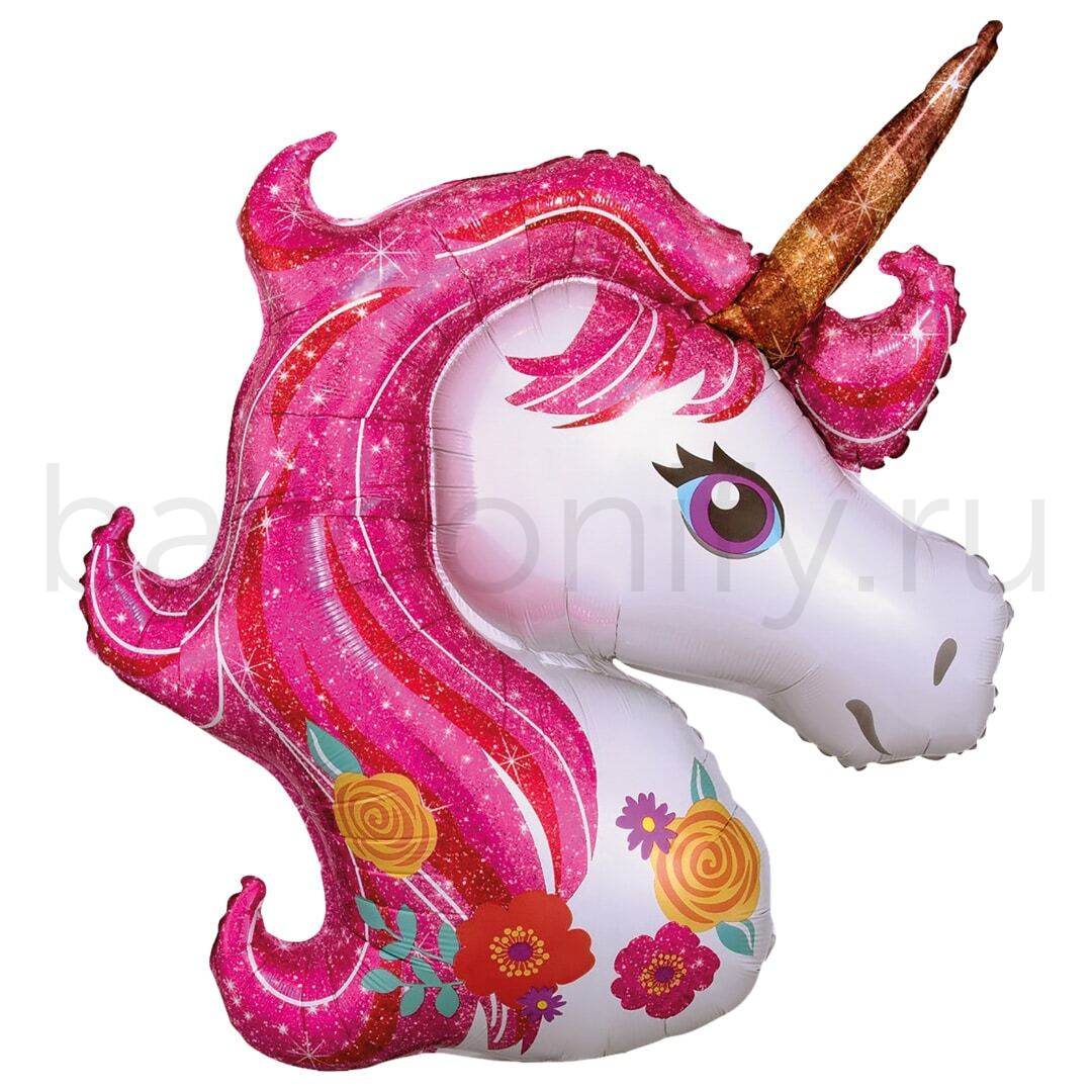 Шар (46''/117 см) Фигура, Голова, Цветочный Единорог, Розовый, 1 шт.
