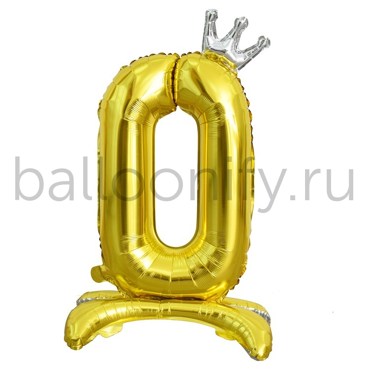 Шар ЦИФРА 0 Gold на подставке Корона 32" 81 см