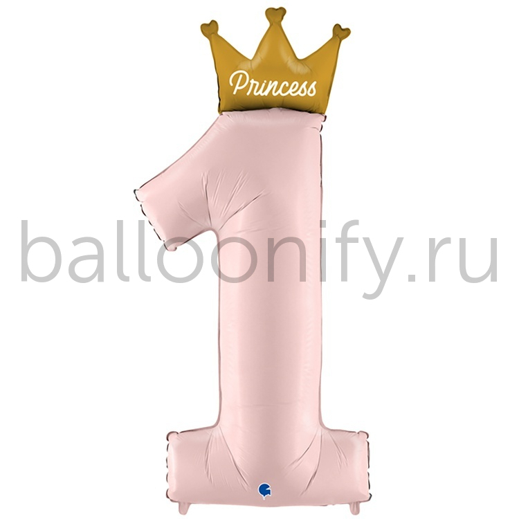 Шар ЦИФРА 1 PRINCESS с короной розов 46" 116 см