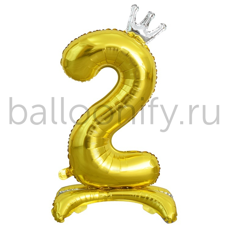 Шар ЦИФРА 2 Gold на подставке Корона 32" 81 см