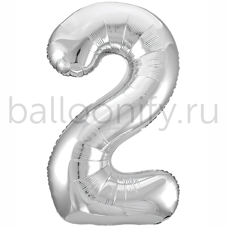 Шар ЦИФРА 2 Металлик Silver 40" 102 см