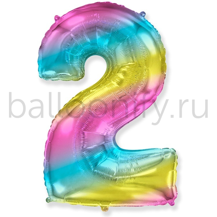 Шар ЦИФРА 2 Радуга Металлик 40" 102 см