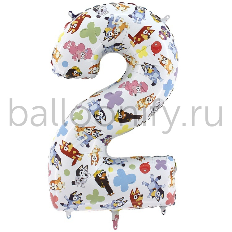 Шар ЦИФРА 2 Щенки Блу 26" 66 см