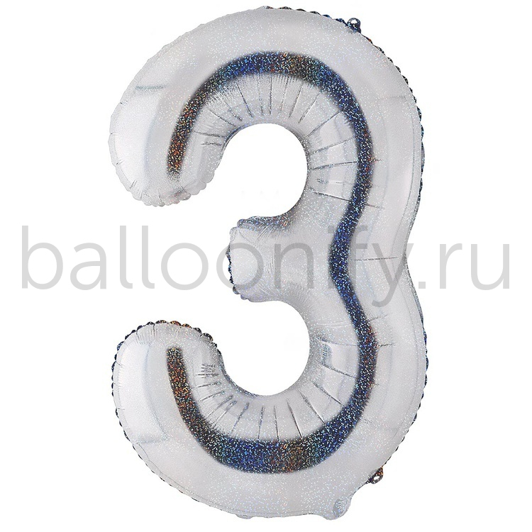 Шар ЦИФРА 3 Silver блеск 40" 102 см