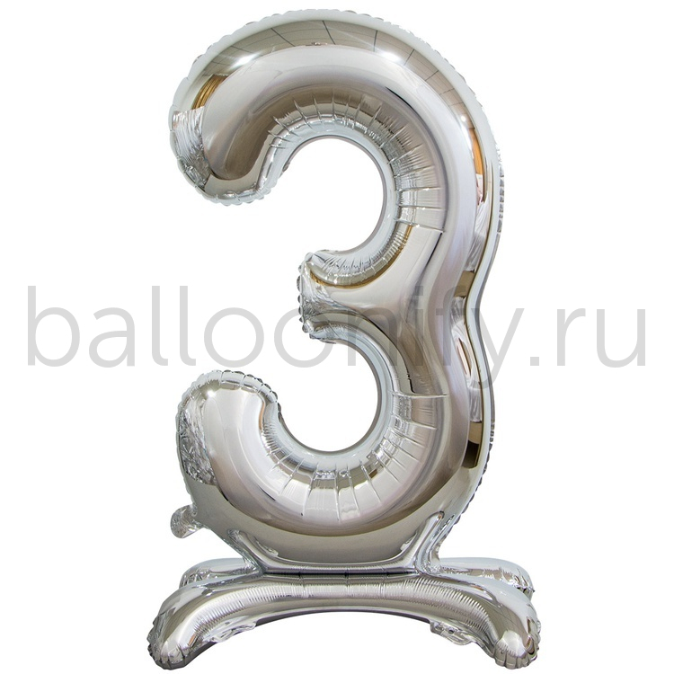 Шар ЦИФРА 3 Silver на подставке 30" 76 см