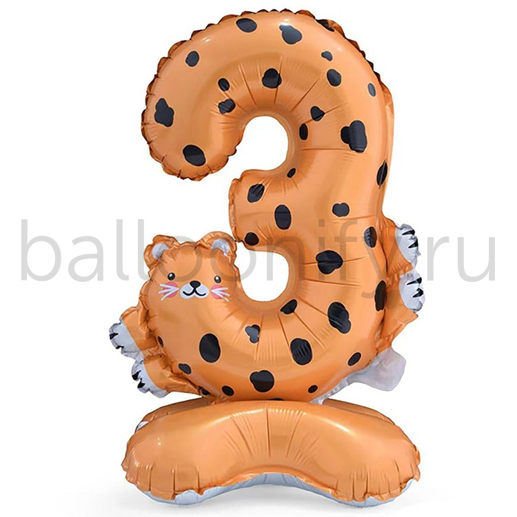 Шар ЦИФРА 3 Зоопарк Леопард на подставке 22" 58 см