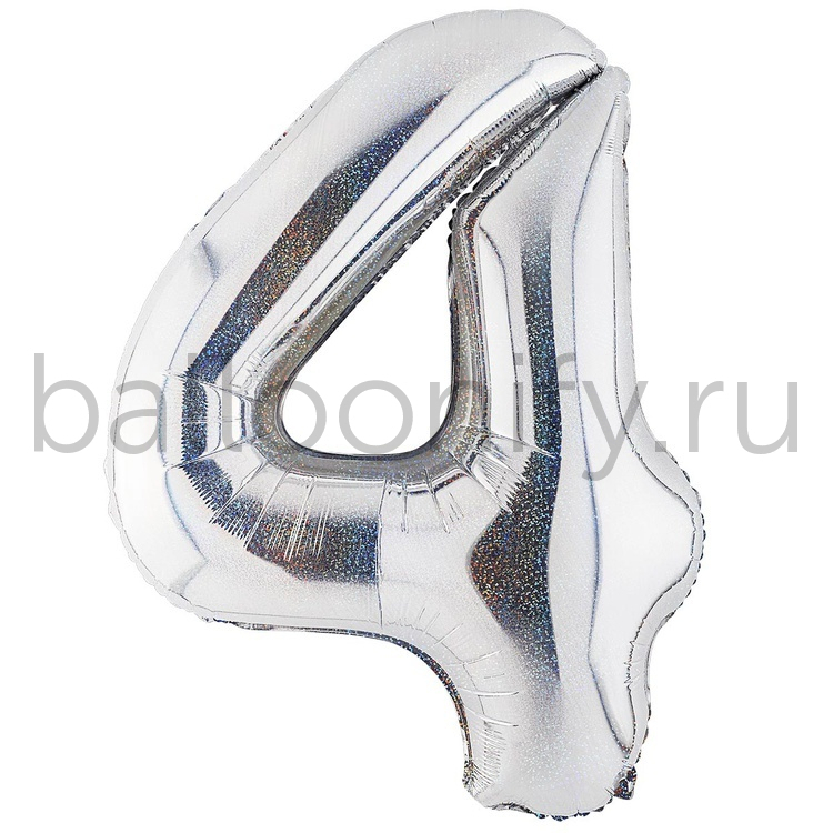 Шар ЦИФРА 4 Silver блеск 40" 102 см