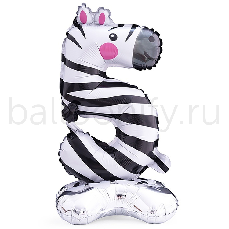 Шар ЦИФРА 5 Зоопарк Зебра на подставке 22" 58 см