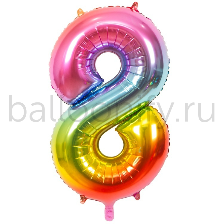 Шар ЦИФРА 8 Радуга металлик 40" 102 см