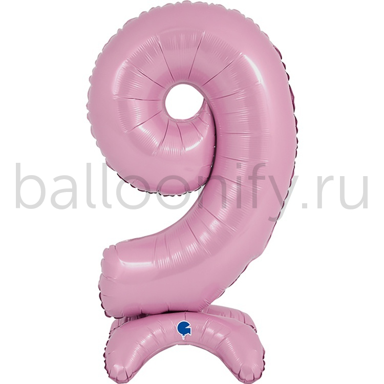 Шар ЦИФРА 9 Pastel Pink на подставке 25" 63 см