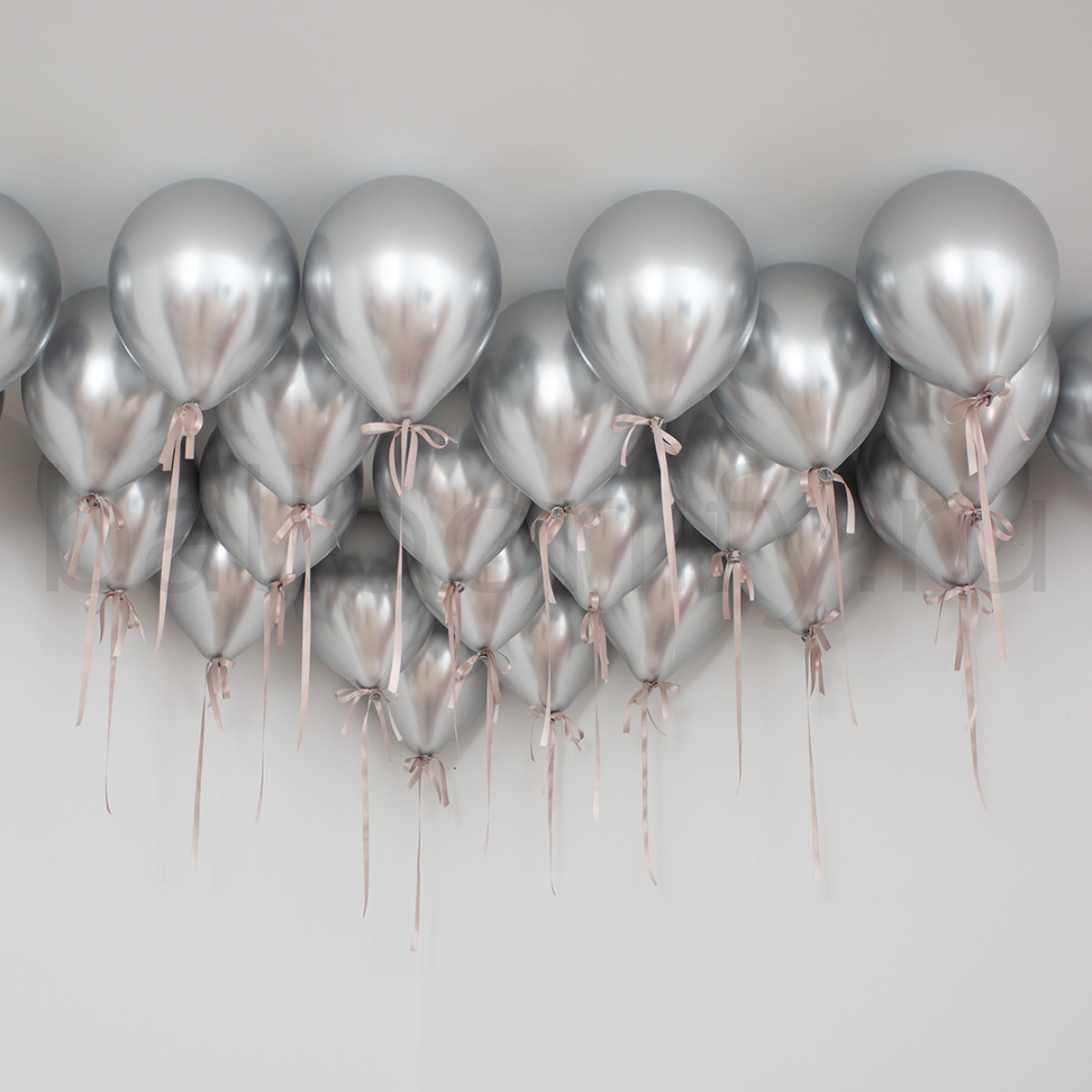 Воздушные шары под потолок из коллекции «Лаконичное серебро» - стильное решение для оформления праздничных событий.