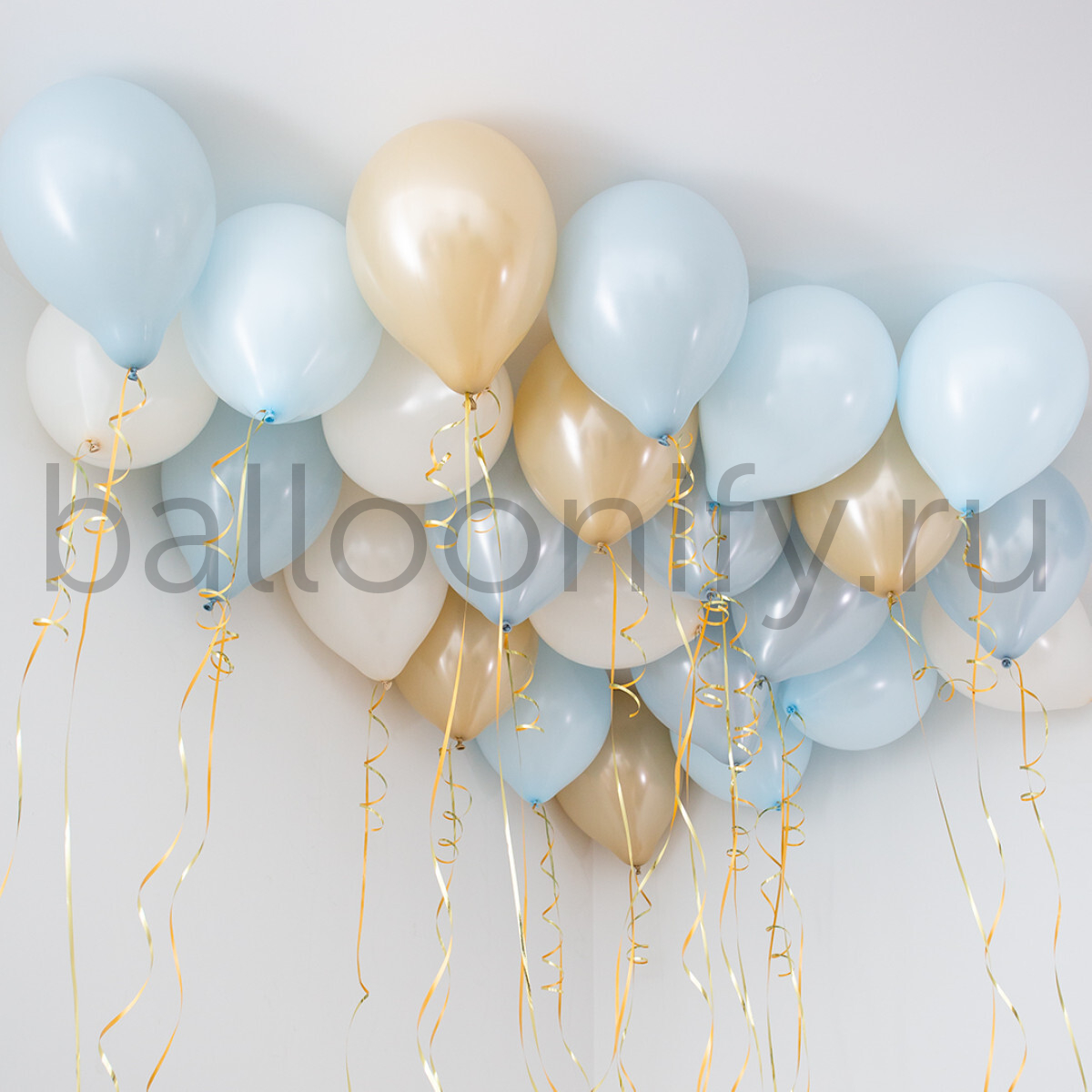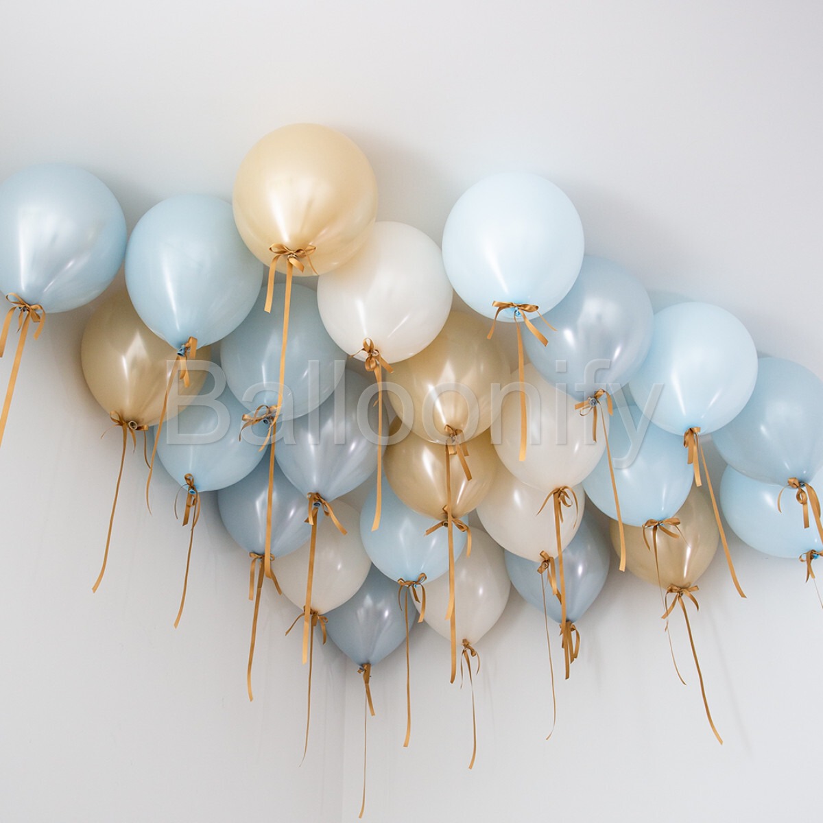 Воздушные шары под потолок из коллекции «Небесно-карамельный», являются популярным выбором для оформления выписки мальчика из роддома. Данная палитра, также подойдёт для организации детских праздников, празднования годовасия или просто для дня рождения.