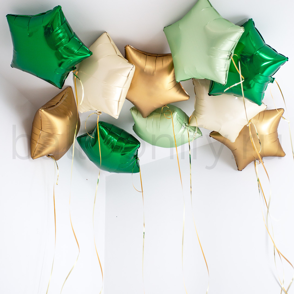 Воздушные шары под потолок из коллекции «Звезды изумрудное золото» - стильное решение для оформления праздничных событий.