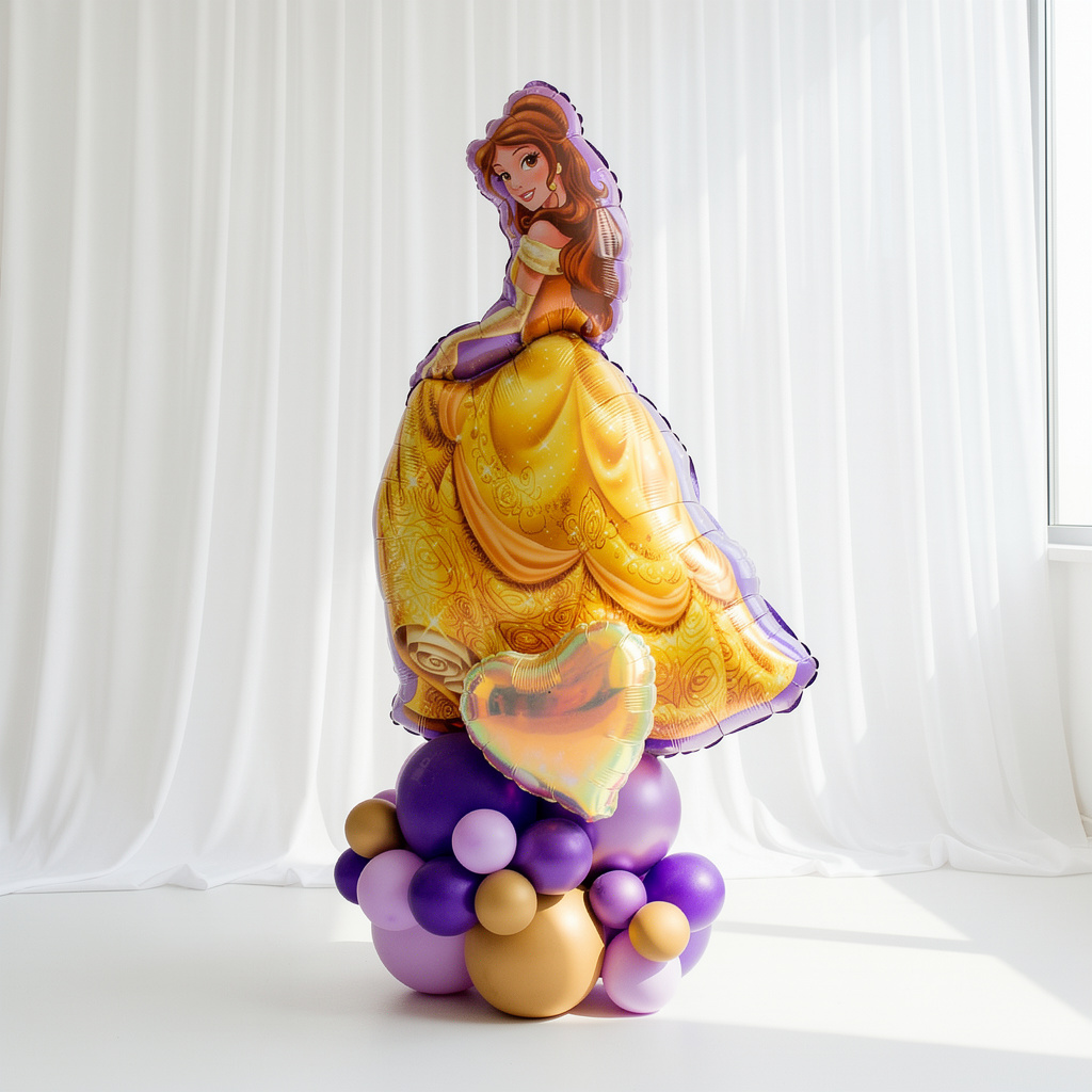 Превратите детский праздник в настоящую сказку с помощью изысканной композиции из воздушных шаров с героиней мультфильма «Красавица и Чудовище» — принцессой Белль.