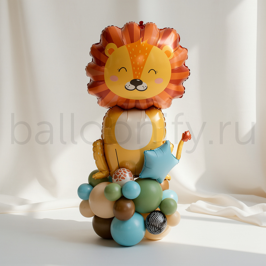 🌟 Композиция из воздушных шаров «Весёлый лев» — идеальное украшение для детского праздника!🌟