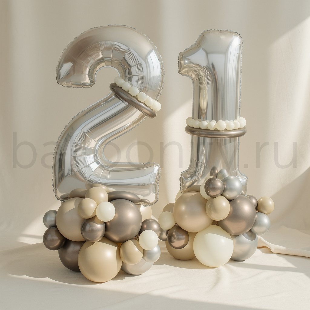 Представляем вашему вниманию великолепную плетеную композицию из воздушных шаров с эффектной цифрой — идеальное решение для тех, кто мечтает о волшебном празднике и хочет порадовать близких оригинальным оформлением.